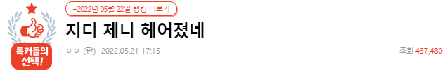 그러나 최근 지드래곤과 제니가 헤어졌다는 주장이 제기되었습니다. 한 온라인 커뮤니티에는 '지디 제니 헤어졌네'라는 제목의 게시물이 게재되었습니다.