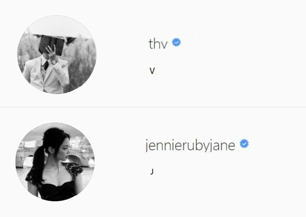뷔와 제니가 각각 인스타그램 프로필은 이니셜 'V'와 'J'로 해놓은 것도 열애설의 근거로 지목되었습니다.