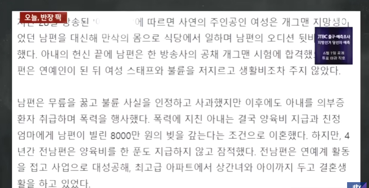 이어 "난 '웃찾사'에 나오지도 않았고 시험을 보고 활동하지 않았다"며 "곧 입장을 표명할 것이다. 아내가 내 뒷바라지를 했다는 것도 거짓말이다. 양육비도 초반에는 150만 원씩 지급했다"고 반박했습니다.