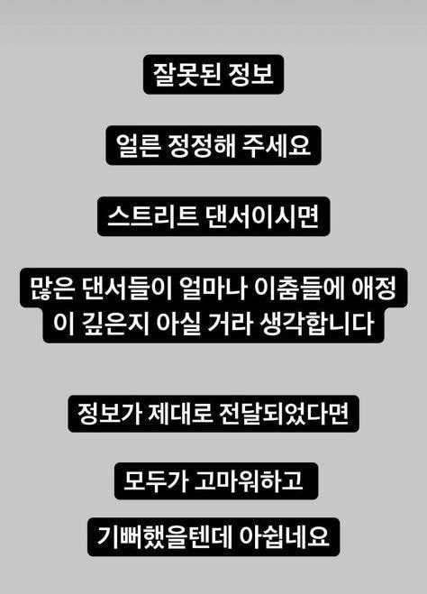 방송이 나간 후 여러 스트릿 댄서들은 각자 인스타그램 스토리를 통해 해당 방송의 장면은 언급하며 잘못된 설명이라고 지적했습니다.