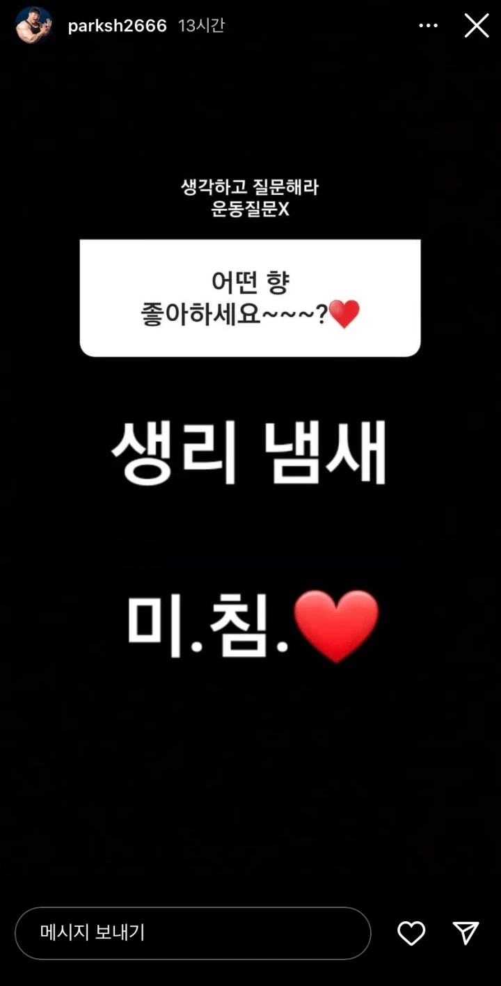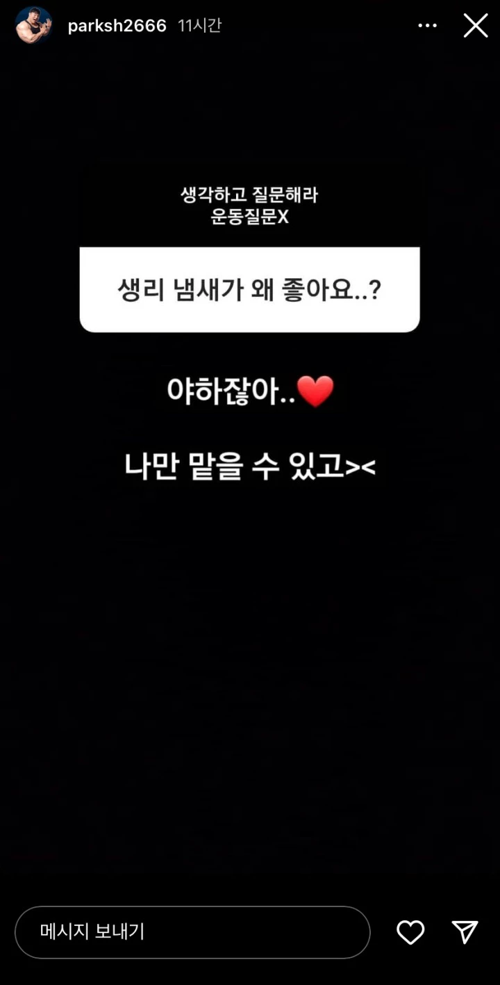 헬스 유튜버 박승현 '좋아하는 향은?' 질문에 "생리 냄새 미침♥"