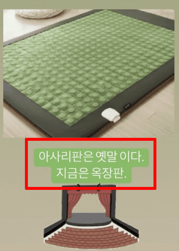 뮤지컬 배우 김호영은 14일 새벽 자신의 인스타그램 스토리에 옥장판 사진과 함께 "아사리판은 옛말이다. 지금은 옥장판"이라는 문구를 게재했습니다. 또 해당 사진에 공연장 이모티콘도 첨부했습니다.
