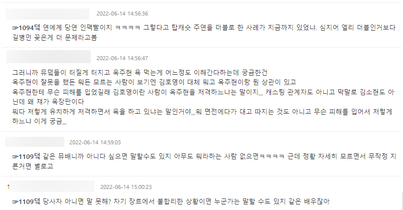 그러면서 누리꾼들은 엘리자벳 역의 캐스팅에 김소현이 제외되고 옥주현과 절친한 사이로 알려진 이지혜가 엘리자벳 역으로 참여하는 데 김호영이 불만을 표출한 것이라고 추측했습니다.