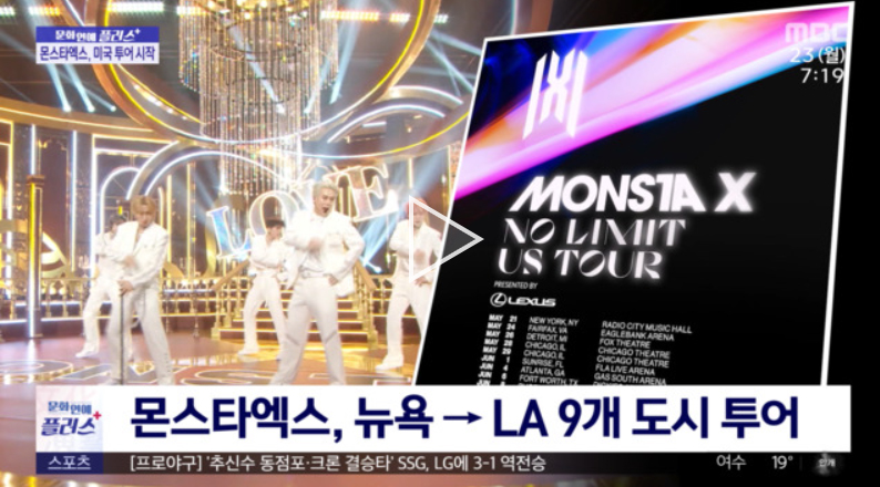 몬스타엑스는 지난달 21일부터 6월 11일까지 미주투어 '2022 MONSTA X NO LIMIT US TOUR Presented by Lexus'를 개최했습니다. 뉴욕 공연을 시작으로 페어팩스, 디트로이트, 시카고, 선라이즈, 델루스, 포트워스, 피닉스, 로스앤젤레스까지 9개 도시를 돌며 현지 팬들을 만났습니다.