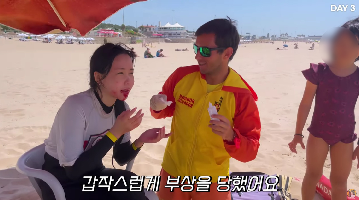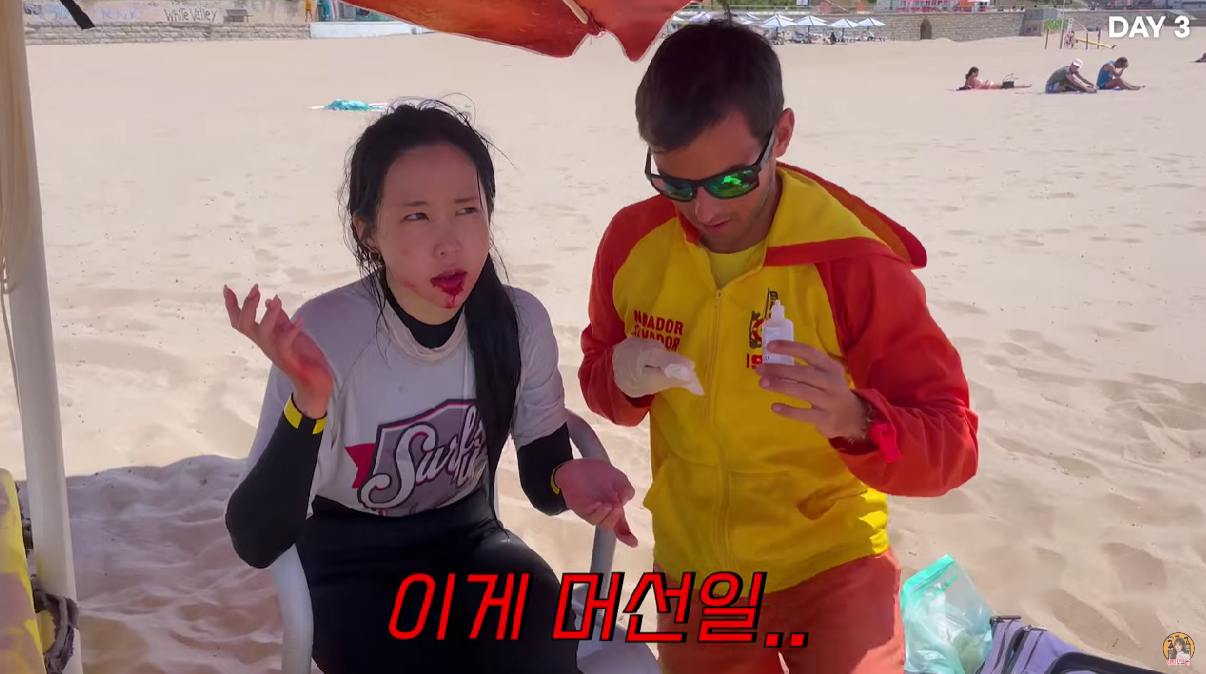 웨이는 "서핑을 하다 사고를 당했다. 서피 보드를 집으려고 하는 순간 파도에 쉽쓸려 온 보드가 얼굴을 때렸다. 해변가 쪽 파도가 원래 제일 세다고 하더라"라고 설명했습니다.