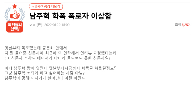 남주혁의 학폭 의혹과 관련해 온라인 커뮤니티 등에서도 "남주혁 학폭 아닌 거 같은데?" 등의 글이 올라오고 있습니다. 이에 네티즌들은 남주혁의 학폭 의혹에 의문을 제기하는 반응을 보이고 있습니다.