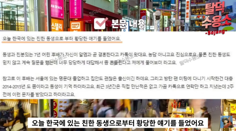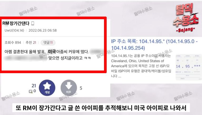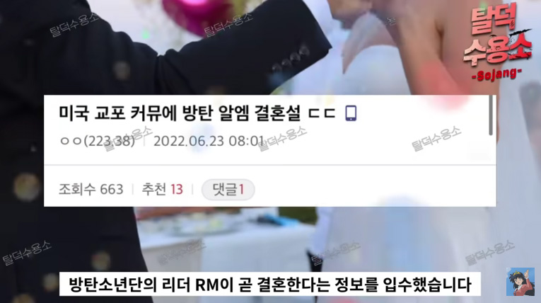 앞서 한 유튜버는 알엠(RM)의 결혼 루머를 유포했습니다. 최근 재미 한인 커뮤니티 미씨 USA에 RM 결혼설 관련 글이 게재됐다는 것이었는데요.