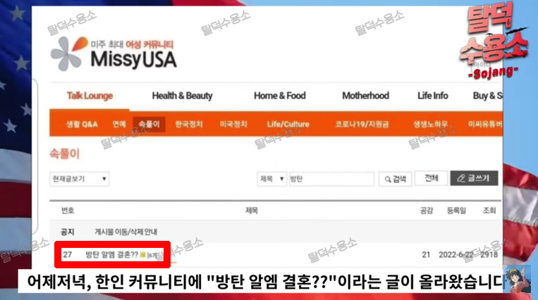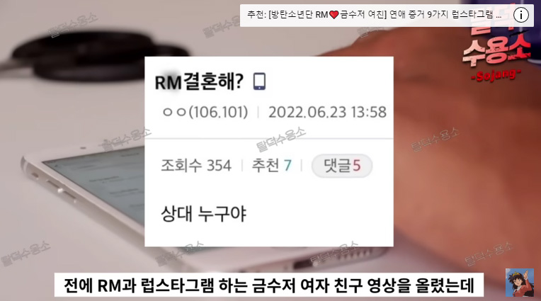 앞서 한 유튜버는 알엠(RM)의 결혼 루머를 유포했습니다. 최근 재미 한인 커뮤니티 미씨 USA에 RM 결혼설 관련 글이 게재됐다는 것이었는데요.