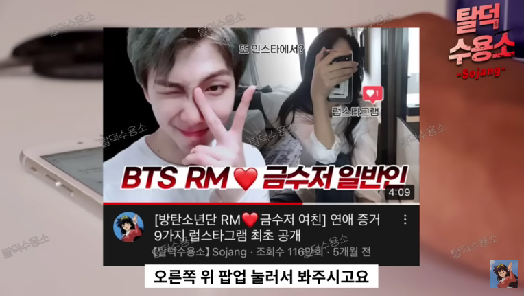 루머를 퍼트린 유튜버 '탈덕수용소'는 지난해 12월 30일에도 RM이 재력가인 비연예인 여성과 사귄다고 주장하며 RM이 이 여성과 럽스타그램을 했다고 주장했습니다.