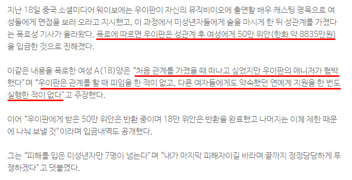 엑소 크리스(우이판) 미성년자 성폭행