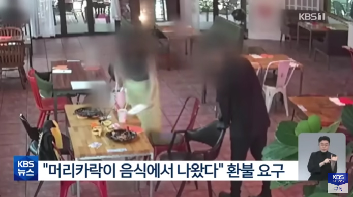 이후 남아있던 여성은 종업원에게 휴지를 보여주며 먹던 음식에서 머리카락이 나왔다고 항의해 음식값을 환불받고 돌아갔습니다. 종업원은 "(당시 손님의) 기분이 너무 언짢으시고, 자기 딸은 비위가 너무 약해서 지금 구역질하러 화장실에 갔다면서 메뉴 전체에 대한 환불을 원하시더라"라고 말했습니다.