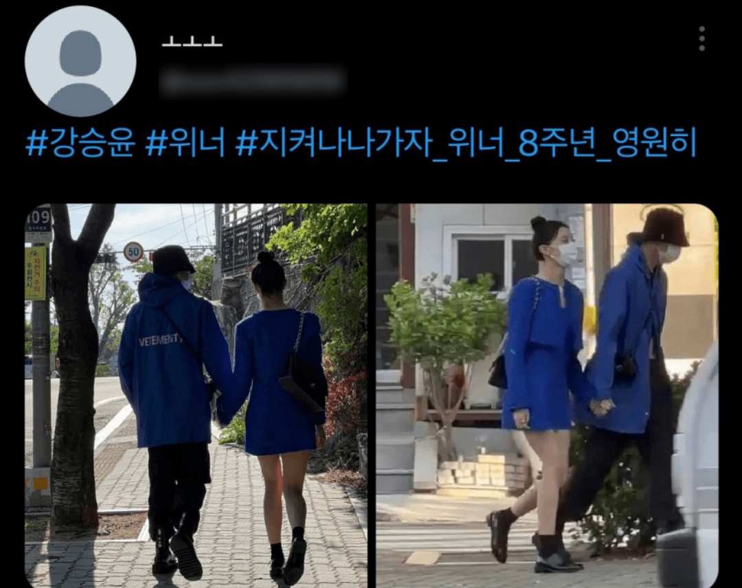 지난 17일 한 트위터 계정에는 강승윤이 한 여성과 손을 잡고 걸어가는 모습이 담긴 사진이 게재되었습니다.
