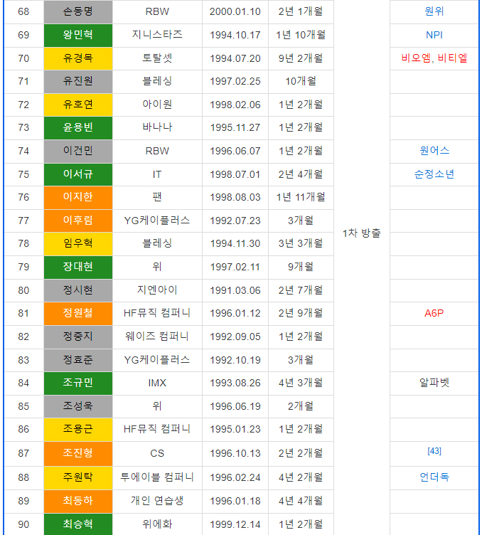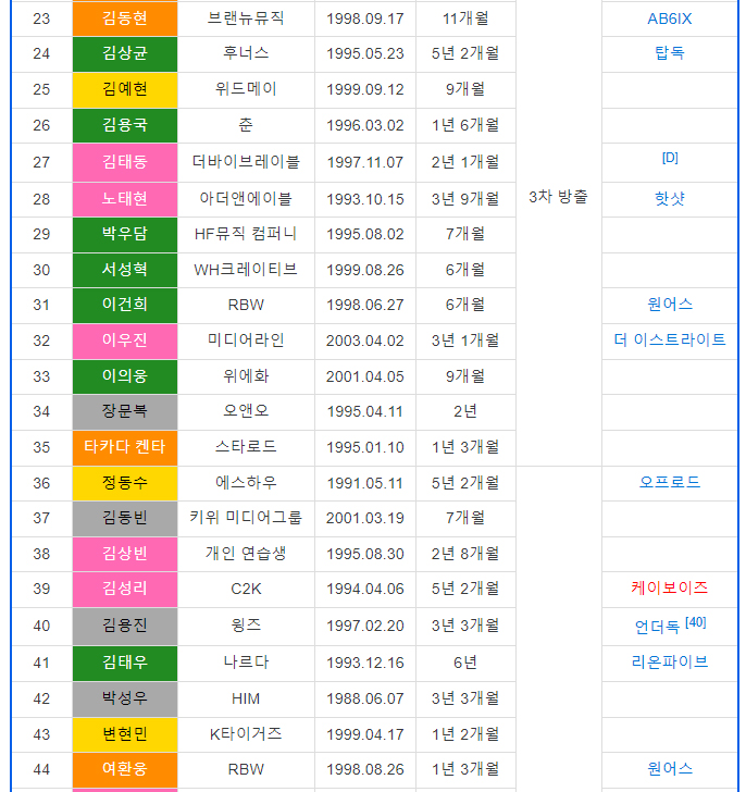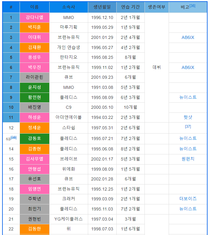 아래는 프로듀스101 시즌2에 출연했던 출연자 참가자 명단입니다.