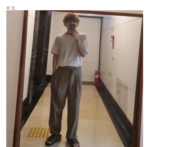 사진 속에서 뷔와 제니는 흰 티에 카키색 바지로 시밀러 룩을 연출한 채 함께 거울 셀카를 찍고 있습니다. 뷔 제니 두 사람은 어깨를 붙이고 여느 연인처럼 다정한 포즈를 취했습니다.