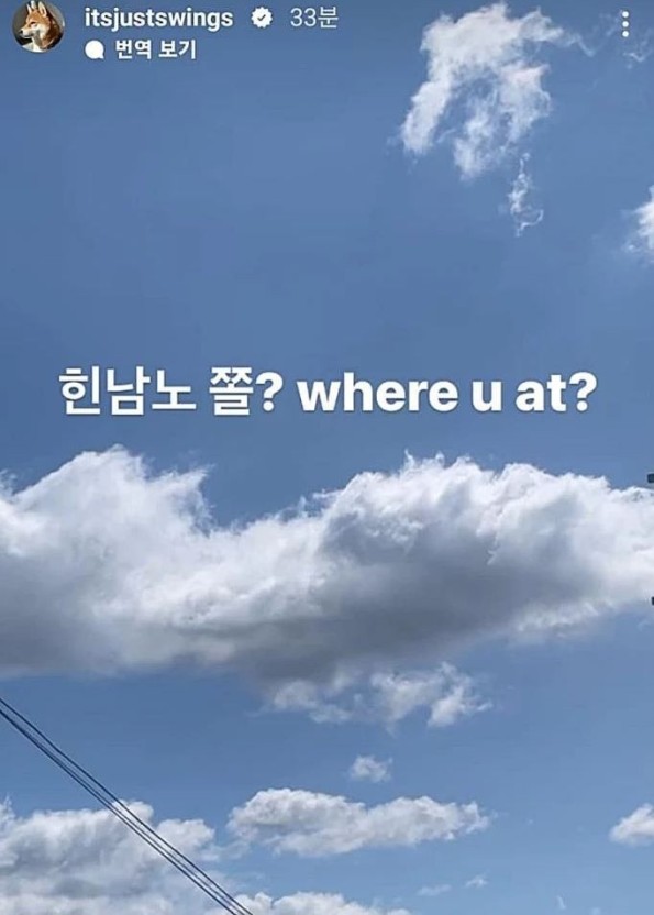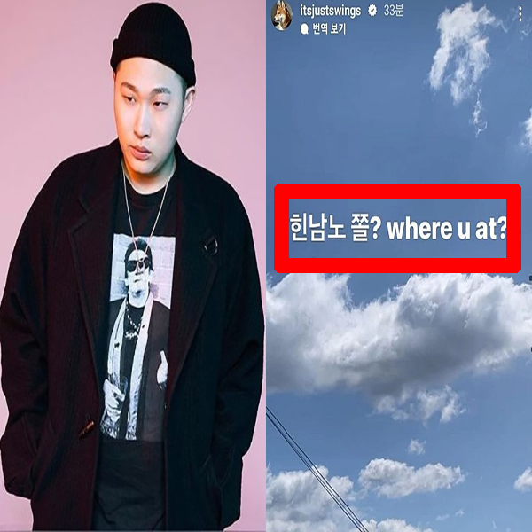 최근 스윙스는 지난 6일 자신의 인스타그램 스토리에 맑은 하늘 사진을 게재하고 "힌남노 쫄? Where you at?(너 어디에 있어?)"라는 글을 올렸습니다.