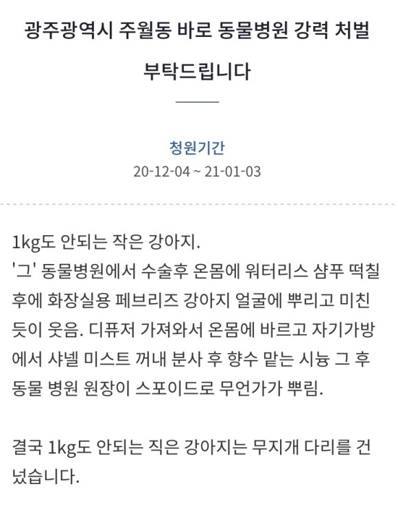 <광주 동물병원 학대 국민청원>