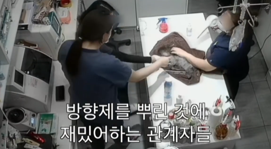 광주광역시의 한 동물병원 의료진이 수술을 마친 강아지에게 화장실용 페브리즈를 분사하며 학대했다는 제보가 올라와 논란이 일고 있습니다.