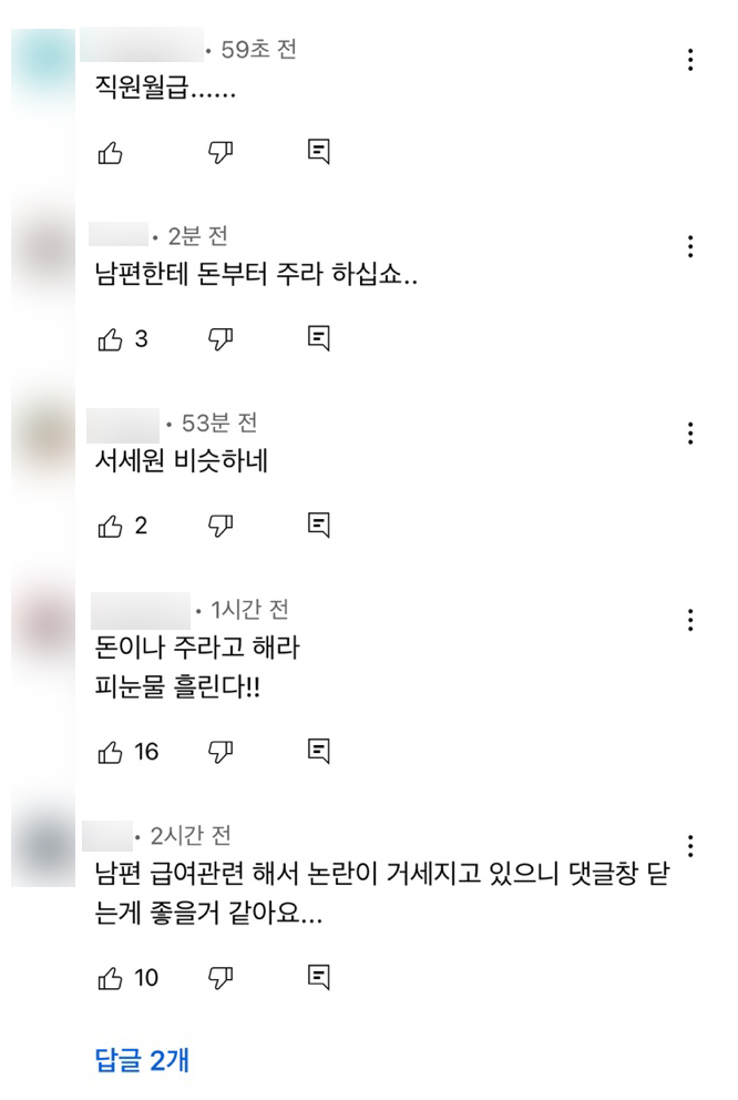 이후 지숙의 또 다른 영상에도 월급 미지급 사태를 비난하는 댓글이 달리고 있는 상황입니다. 이와 관련해 한 매체는 사실 확인을 위해 이두희에게 연락을 취했으나 묵묵부답인 상태라고 전했습니다.