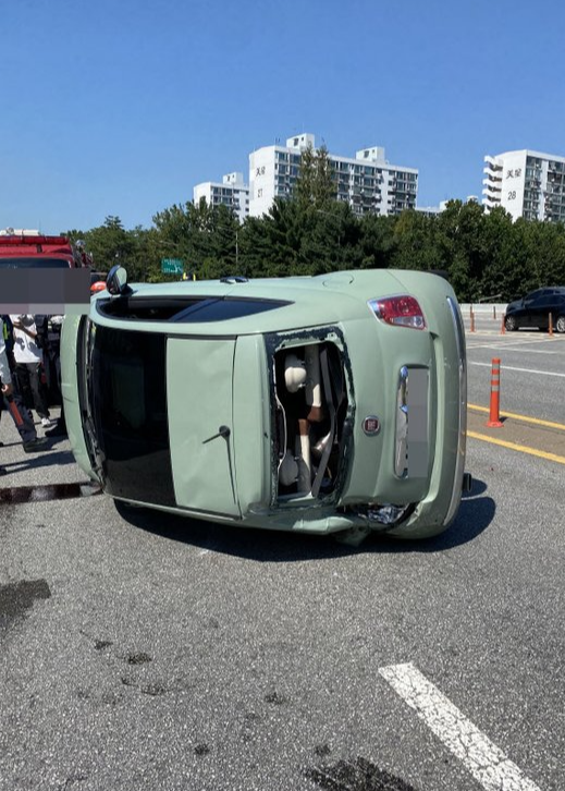 양파의 차량 전복 교통사고 사진에는 양파의 소형 외제차량이 옆으로 누워 있는 모습이 담겨 있었습니다. 사고 당시 아찔한 상황이 연출됐음을 짐작케 했습니다.