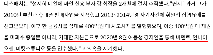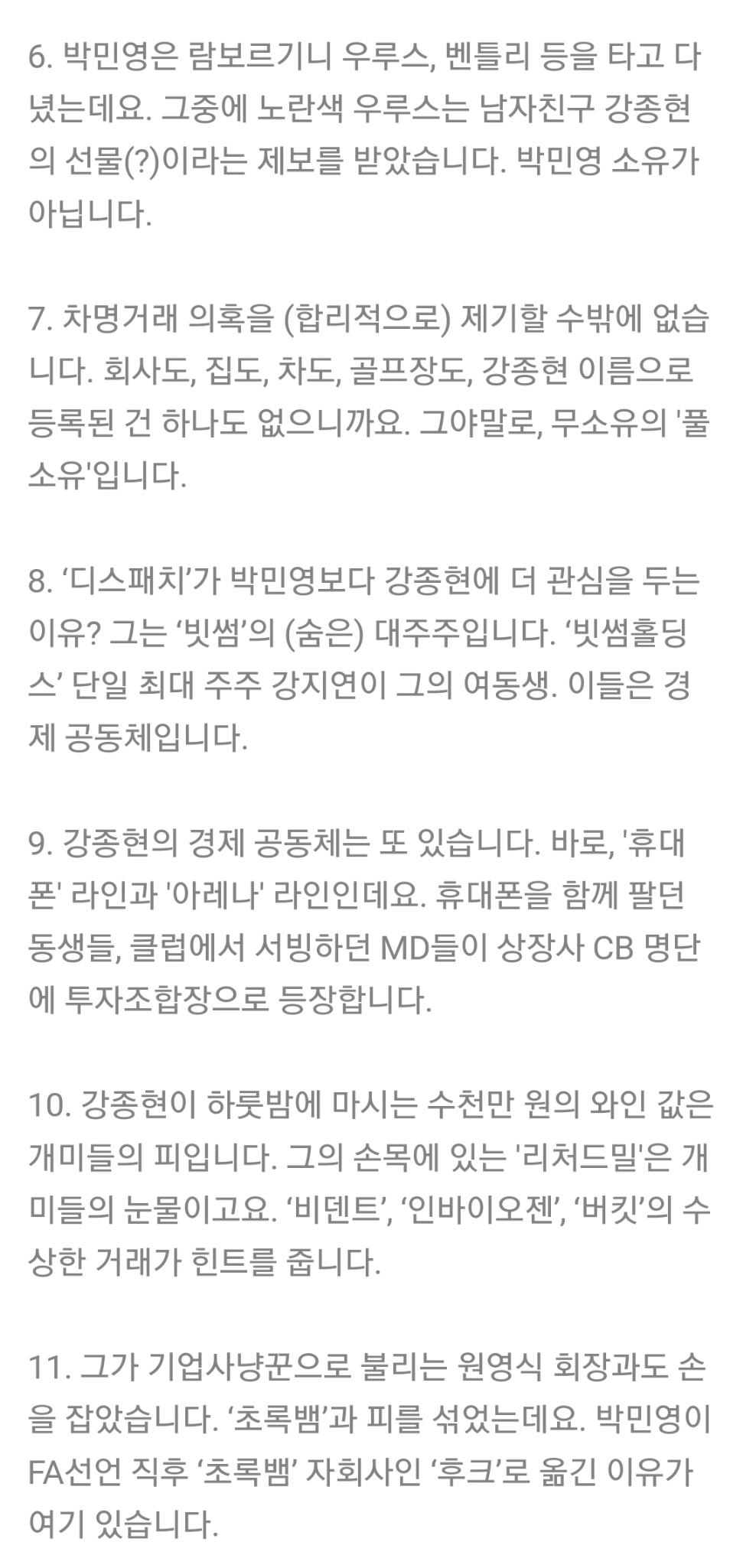 디스패치는 강종현이 부를 축척할 수 있었던 이유는 빗썸의 숨은 대주주였기에 가능했다고 보도했습니다.
