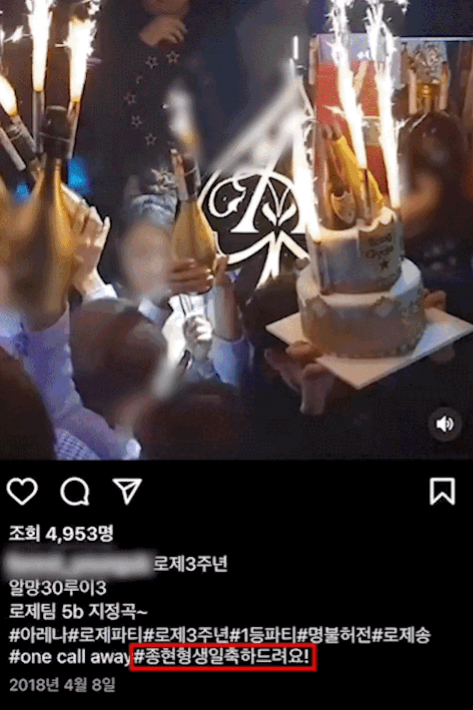 강종현이 클럽과 SNS에서 쓰는 닉네임은 재스퍼로 강 씨는 고가의 술을 구매한 뒤 클럽 전광판에 자신의 닉네임과 메시지를 띄우며 자신의 재력을 과시했습니다.