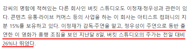 이밖에도 비덴트에 아티스트컴퍼니가 빗썸 최대주주였던 사업가 김재욱 씨를 대표로 선임한 사례와 강종현이 소유한 또 다른 회사로 알려져 있는 버킷 스튜디오가 아티스트컴퍼니 지분 15%를 소유하고 있는 사실이 알려지자 강종현과 이들 배우 간의 관계가 조명되기도 했습니다.