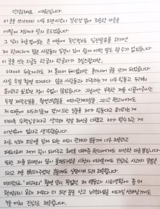 이 사건으로 예원이 이태임에게 했던 '언니 저 마음에 안 들죠?'라는 말이 유행어가 되기도 했는데요, 이어 예원은 사과문을 올렸지만 한동안 이태임과 예원이 사건으로 연예계가 떠들썩했습니다.