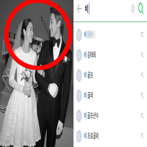현재 인터넷 검색창에 비를 검색하면 연관 검색어로 해당 골프선수의 이름이 함께 언급되면서 루머가 일파만파 커지고 있습니다.
