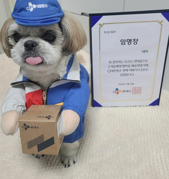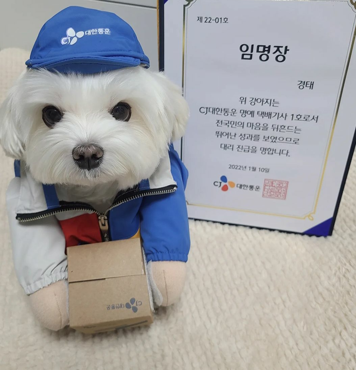전직 체조선수인 경태아부지 김씨는 반려견 경태를 데리고 다니면서 택배기사 일을 해 SNS 등에서 관심을 모았습니다. 경태아부지가 택배기사로 인한 CJ대한통운은 경태와 태희에게 '명예 택배기사'로 임명하고 홍보하기도 했습니다.
