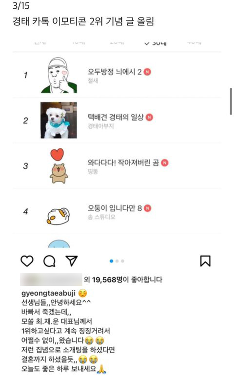 경태아부지 인스타그램에는 22만 명이 넘는 팔로워가 모였으며 경태와 태희의 카카오톡 이모티콘이 출시되기도 했습니다.