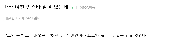 댓글에는 "혹시나 오해할까봐 덧붙이는데 예전부터 팬이라 알고 있는 거임"이라는 댓글 또한 게재되었지만 바타의 여자친구 유무는 정확하게 밝혀진 바는 없습니다.