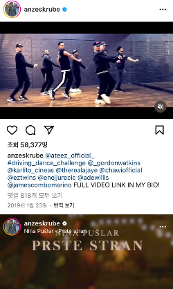 안무가 안제스크루브는 해당 내용뿐만 아니라 지난 2019년 1월 에이티즈의 안무 시안 영상을 인스타그램 계정 상단에 고정했습니다.