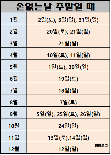<2021년 손없는날 주말일 때>