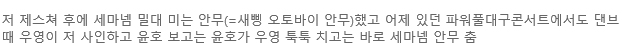 이렇게 팔을 치는 동작은 댄서씬에서 유사성을 지적할 때 하는 표현으로 알려져 있습니다.