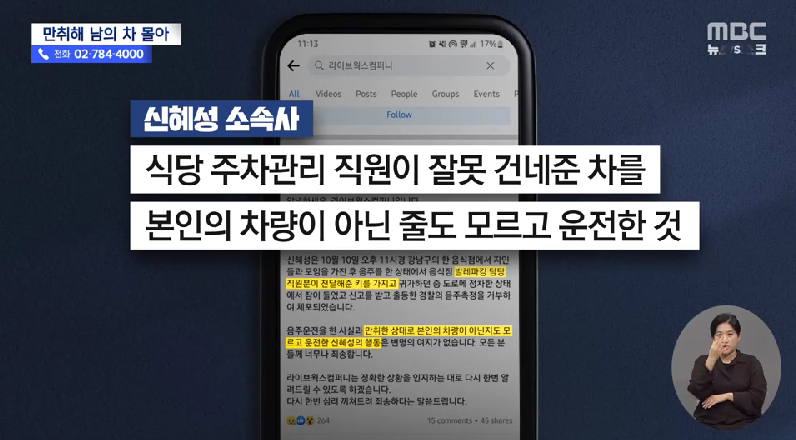 한 매체에 따르면 전날 신혜성이 머물렀던 강남 식당 측은 대리주차 담당 직원이 신혜성에게 해당 차량 키를 제공한 적이 없으며 신혜성은 키가 꽂힌 차를 몰고 그냥 떠났다고 반박했습니다.