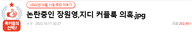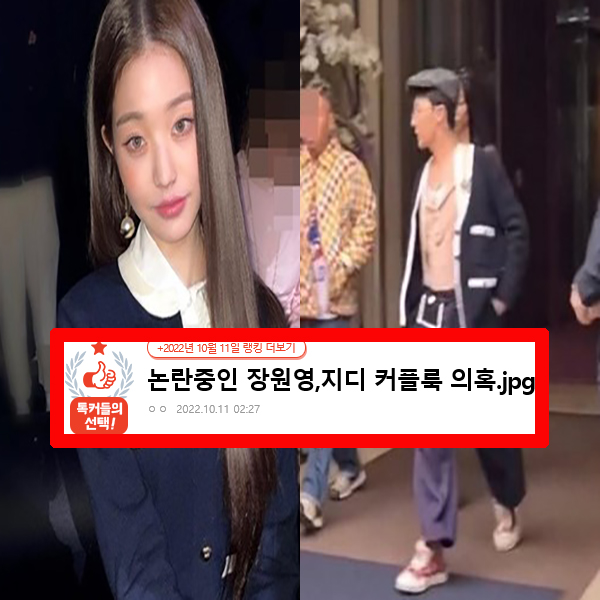 온라인 커뮤니티에는 '논란 중인 장원영, 지디 커플룩 의혹. jpg'라는 게시글이 게재되었습니다.