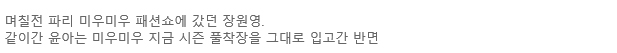 게시글에 따르면 "며칠 전 파리 미우미우 패션쇼에 갔던 장원영"이라며 "같이 간 윤아는 미우미우 지금 시즌 풀 착장을 그대로 입고 간 반면 장원영은 여섯 시즌이나 지난 옷을 입었다. 철 지난 옷을 입은 것이 의아하다는 이야기가 많았다"라고 주장했습니다.