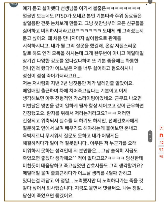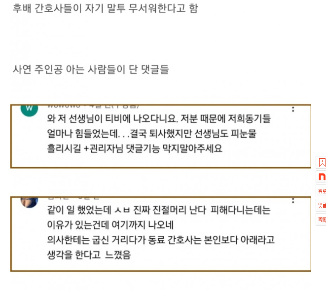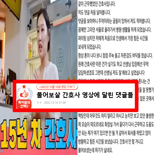최근 온라인 커뮤니티 네이트판에는 '물어보살 간호사 영상에 달린 댓글들'이라는 제목의 글이 게재되었습니다.
