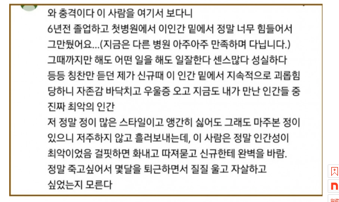 간호사는 일할 때 말투가 센 편인데 후배 간호사의 실수를 지적할 때 말투가 거칠어진다며 특히 자신은 신규 때부터 일을 잘했기 때문에 후배들 입장을 잘 이해하지 못하고 답답한 마음에 언성까지 커진다고 밝혔습니다.