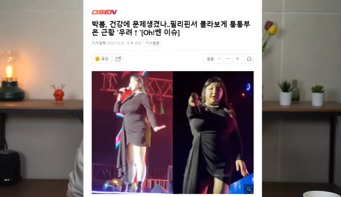 박봄은 지난 21일 필리핀에서 진행된 '팝스티벌 2022'에 참석했습니다. 다만 다소 부은 얼굴과 급격하게 살이 찐 몸매로 건강에 대한 우려를 낳았습니다. 일각에서는 갑상선에 문제가 생긴 게 아니냐며 건강 이상설까지 제기했습니다.