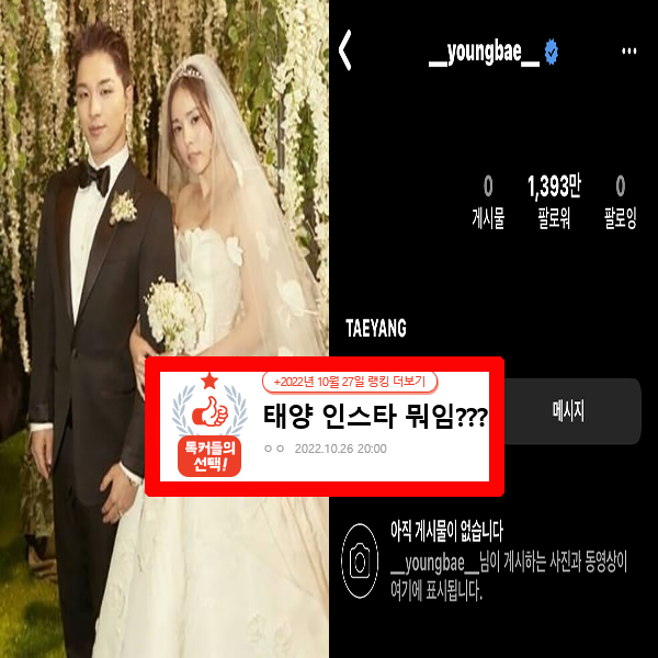 태양은 그동안 인스타그램을 통해 대중과 활발하게 소통을 이어왔습니다. 아내인 배우 민효린과 결혼도 인스타그램을 통해 직접 발표했습니다. 태양은 이날 인스타그램을 정리하며 민효린의 사진까지 모두 삭제했습니다.