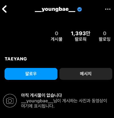 28일 태양의 인스타그램에는 '게시물 없음'이라는 글만 덩그러니 남아있을 뿐 그 어떤 사진도 남아있지 않은 상태인데요. 프로필 사진도 검은색으로 변경했고 코멘트도 존재하지 않아 눈길을 끌었습니다.