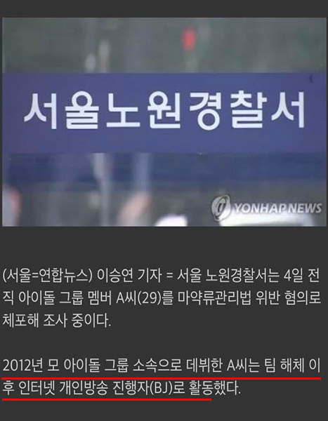 아이돌 출신 BJ 20대 2012년 데뷔 마약 누구