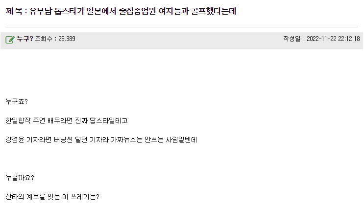 2022.11.23 - [연예] - 유부남 톱스타 40대 A씨 일본 원정 골프 누구