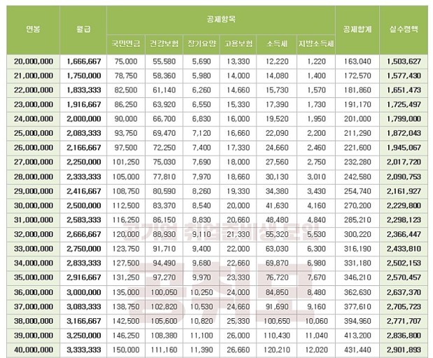 2021년 최저연봉이 2200만 원 정도라고 하는데요, 최저임금에 따라 최저월급이 180만 원 정도라서 그렇게 되는 것 같습니다. 2020 연봉 실수령액 표를 확인해보시고 실수령액을 예상해보는 것도 좋을 것 같습니다.