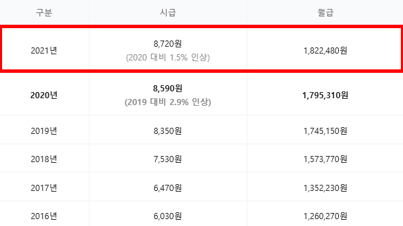 <최저시급으로 계산한 2021년 급여는 어떻게 될까>