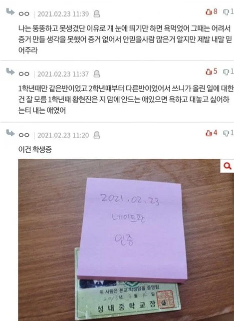 앞서 한 온라인 커뮤니티에는 현진의 중학교 동창이라고 주장한 누리꾼 A 씨가 현진에게 학폭을 당했다는 글을 게재했습니다.