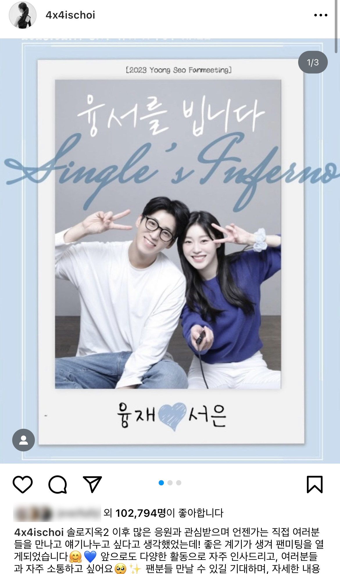 넷플릭스 예능 '솔로지옥2'에서 최종 커플이 된 조융재 최서은은 지난 18일 SNS를 통해 커플 팬미팅 공지를 게재했습니다.