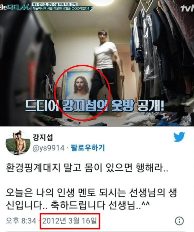 강지섭은 문제의 예수 그림을 찢은 모습도 공개하며 "진작 버렸어야 할 거 왜 창고에 둬선..."이라는 문구를 덧붙이며 jms 탈퇴를 재차 강조했습니다.