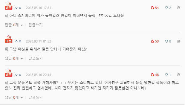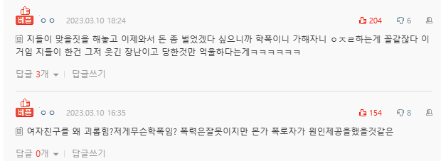 이에 다른 누리꾼이 "놀림 정도가 어느 정도였냐"는 물음에 C씨는 "폭행한 것은 맞다. 놀렸다는 부분은 참 애매하다. 친구들끼리 '헤헤헤'거리는 수준의 농담이었던 것 같다"고 말했습니다. 그러면서 "남자친구 이름을 갖고 놀렸다. 이름이 '안길어래' 이러면서"라고 설명했습니다.